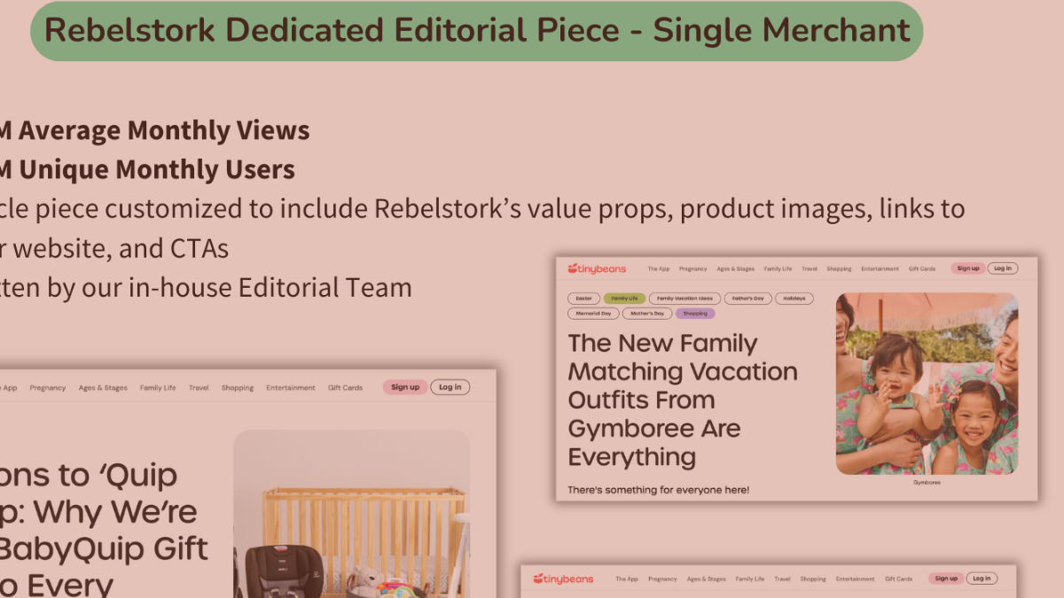 A direct-to-brand editorial pitch designed to highlight REBEL’s value within a high-traffic parenting platform. Includes reach metrics, custom deliverables, and deadline-based incentive. (B2B proposal)